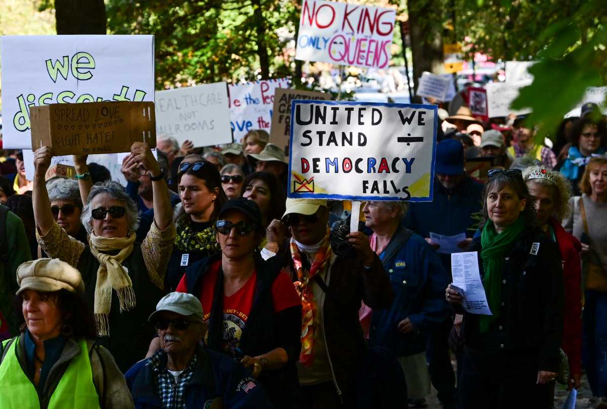 "Roughly 3,000 Brooklynites marched through Park Slope on Saturday to denounce President Donald Trump and his cabinet as part of the nationwide No Kings march. Waving signs and banners with slogans like "United We Stand, divided Democracy Falls" and "Kings Are For Fairytales," protestors of all ages marched from Grand Army Plaza to Bartel Pritchard Square, pushing back against the administration's "chaos, corruption, and cruelty.""