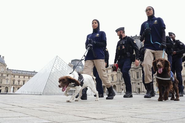 New footage is giving the public a first look at one of the four masked men who scaled a balcony at the Louvre in France on Sunday and successfully made off with eight pieces of Napoleonic jewelry in a meticulously timed heist. Armed with power tools and dressed in high-visibility jackets, the gang broke through a second-floor window of the country's most famous museum, accessing the Apollon gallery via a maintenance area, where the French crown jewels are kept,